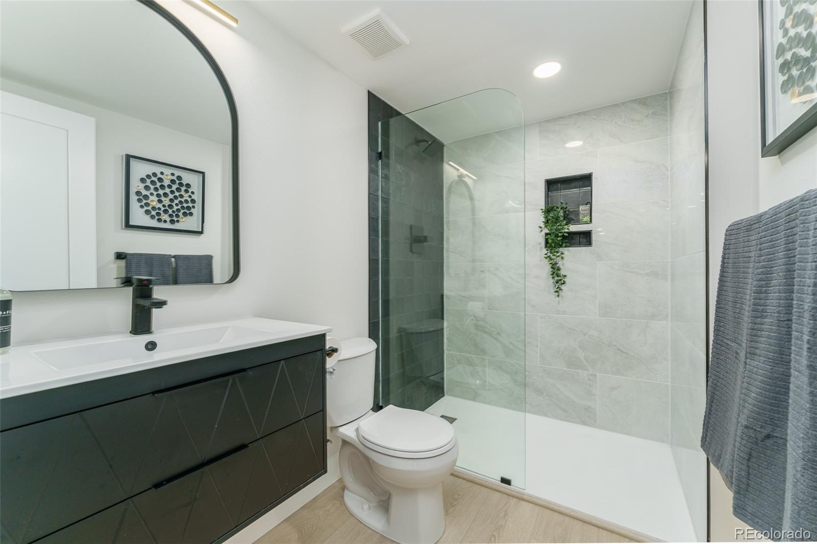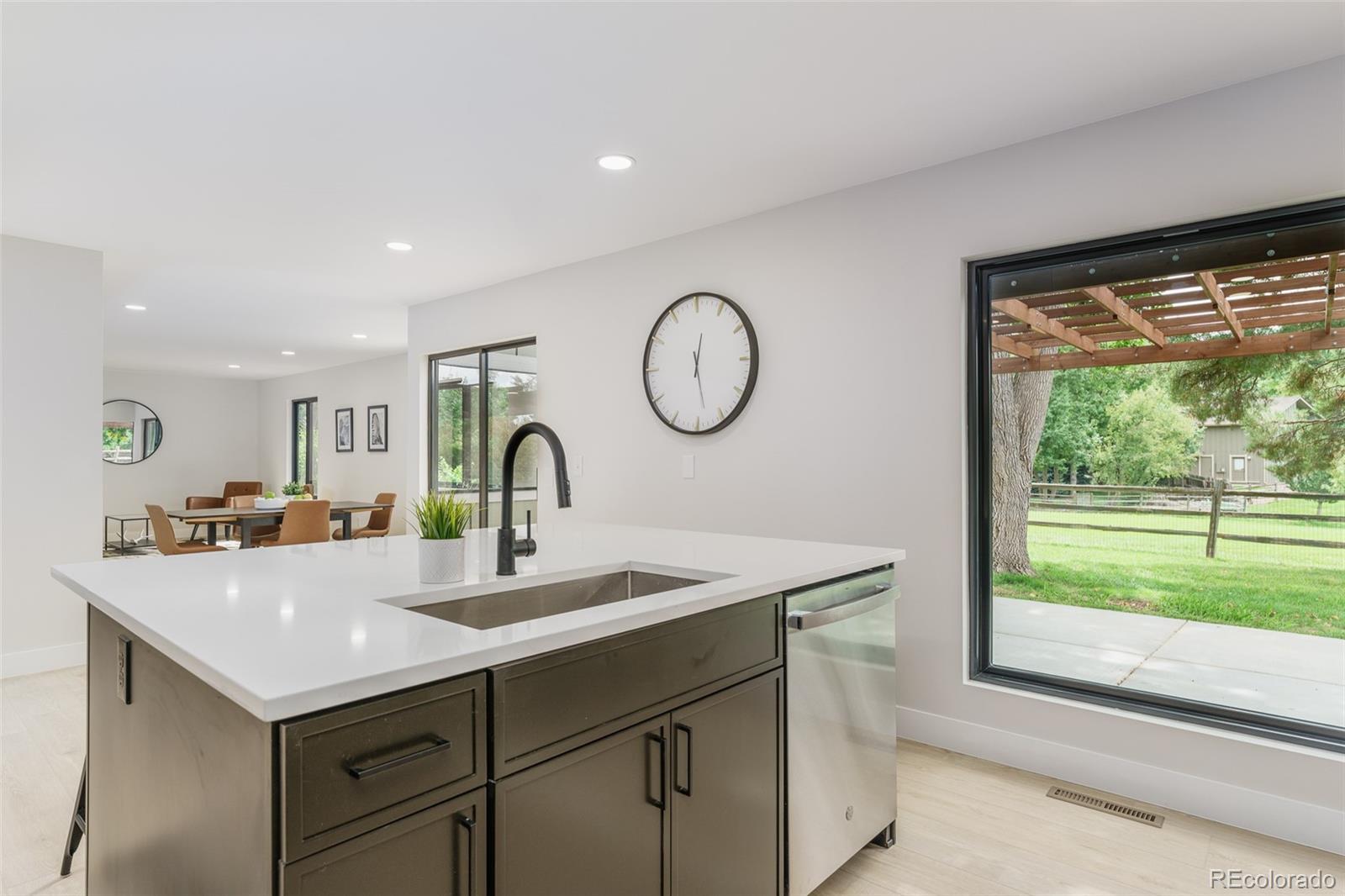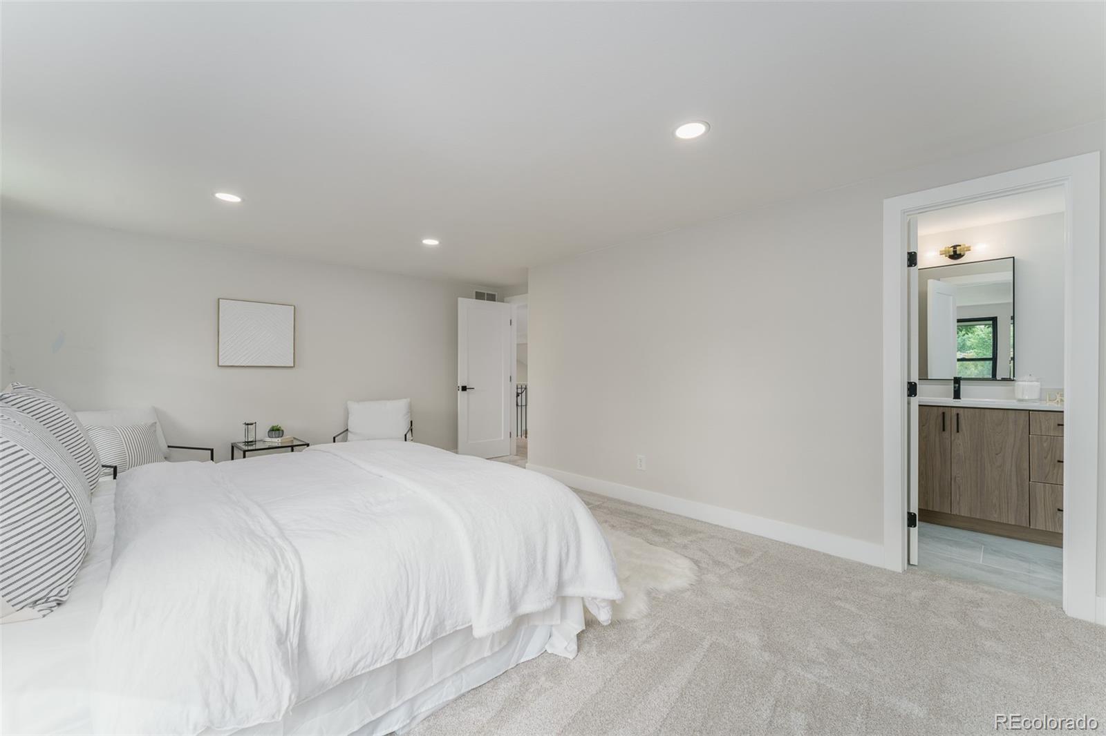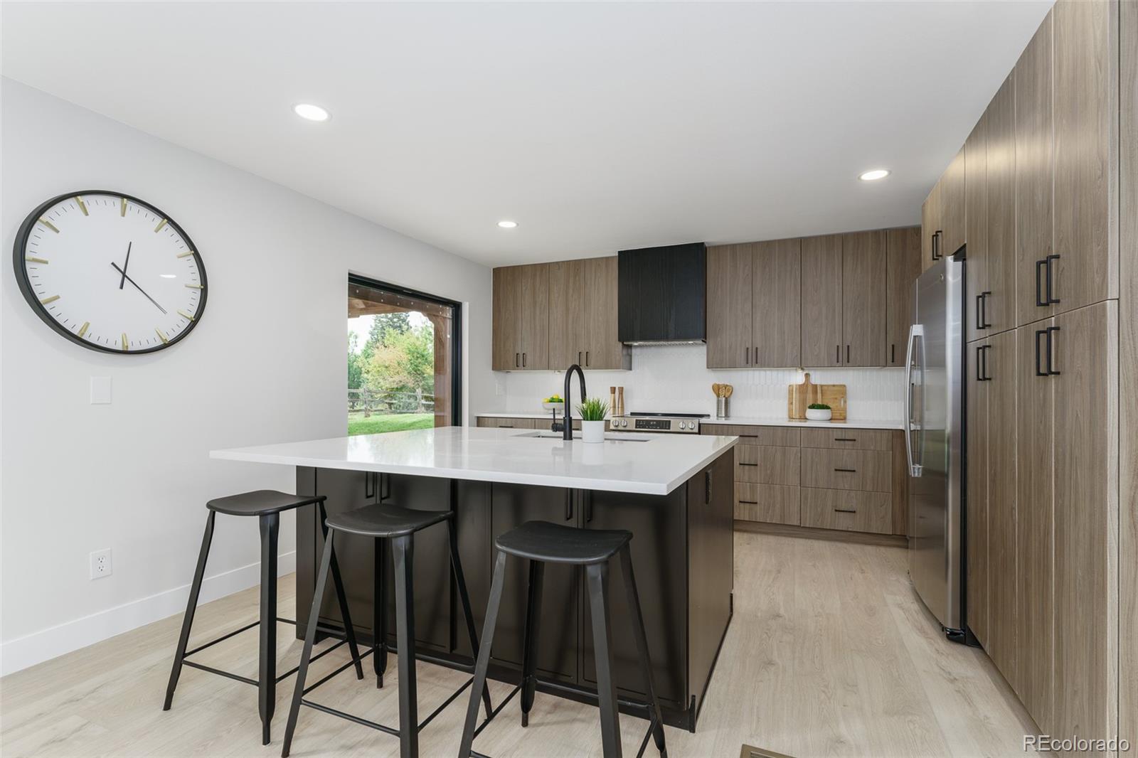 Not your granny's house! This sleek, modern, updated Brookdale sits on a fabulous greenbelt at the end of a cul-de-sac in the heart of Willow Creek I. With vaulted ceilings in the entry and formal living room, natural light pours in from every angle. The modern Euro-style cabinets, open shelving and generous island make the kitchen a joy to work in. Form meets function with new appliances and generous storage. The open lower area has multiple windows to take in the fabulous views, and the large deck has plenty of room for entertaining. The primary suite has an updated bath with a walk in shower, large double vanity and a generous closet. There are two additional bedrooms upstairs and a full second bathroom. A bonus room in the basement could function as a guest room, playroom, media room or office. New Anderson windows, new furnace and a third bathroom complete the package. A short walk through a fabulous greenbelt immediately outside the back fence leads to tennis courts, a pool, playground and a clubhouse reserved for residents only. Park Meadows mall is minutes away with multiple dining and shopping opportunities. Easy access to I-25 and C470. Convenient to the tech center. Award-winning Willow Creek Elementary feeds into either West or Campus Middle School and Cherry Creek High School.